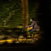 其实影片里还有一处“瀑布”,那便是遮盖大楼的巨型蓝布。它隔绝了阳光,也隔绝了人内心的阴暗面,而这条静止的“瀑布”让这栋大楼像一块硕大的墓碑,墓主便是所有现代人。实际上,现代人所有可能给生活的热忱,都在规律与规划中被消杀干净,只有“傍晚六点下班,换掉药厂的衣裳”;只有“一万匹脱缰的马,在他脑海中奔跑”。