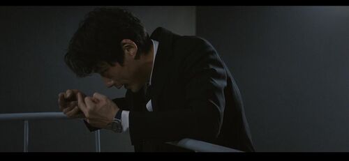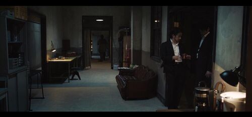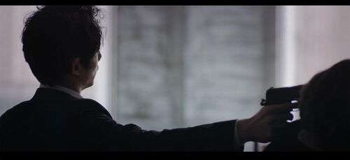镜头回到近景,室岡一直在盯着兼高看。兼高给予回应,但没有看室岡的脸,在室岡发出‘原来如此’的感叹并离开之后,他才把视线从咖啡杯转向室岡的侧脸,此时室岡已经离开他旁边的位置,跑着去楼下处理女杀手的事了。