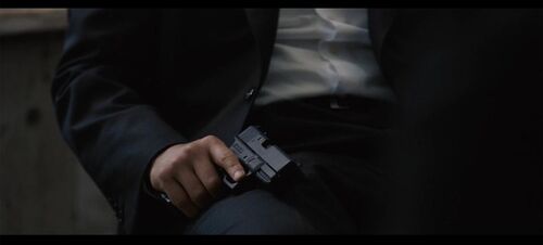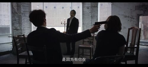 接下来,整个电影里最刻意的片段即将上场——一场长到没有必要、且百分之百是故意拍成那样的场景:关于枪的讨论。