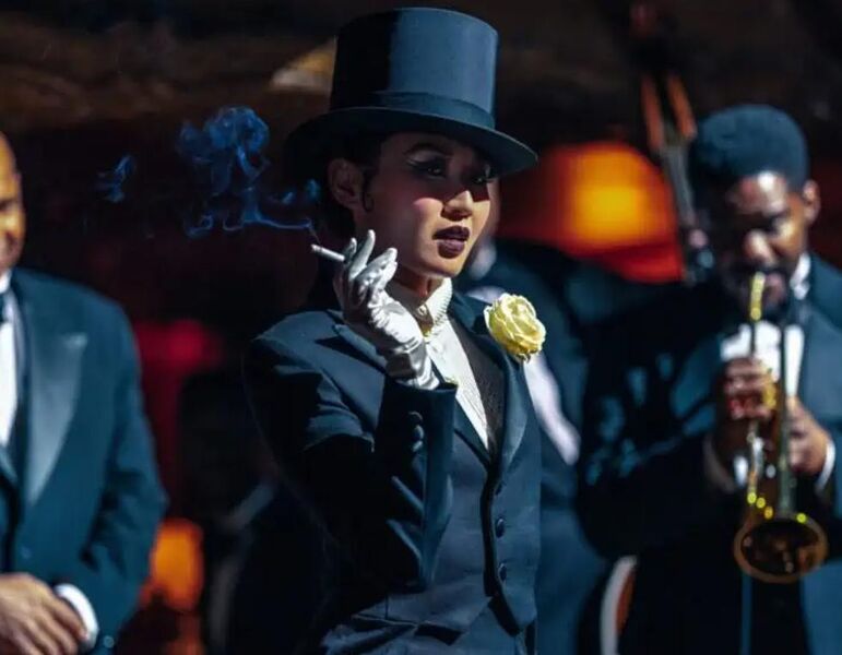 当时的好莱坞,真的有那么多白人顺性别男性群体以外的人参与吗?绝对是的。默片时代白人女性导演、制片人和编辑的数量直到近期才被证实,而在此之前她们却一直被历史埋没。在1930年代大制片厂系统占据行业主导地位之前,女性也有广泛参与到电影创作中的自由。真实历史上,女导演Dorothy Arzner发掘了克拉拉,她在《巴比伦》中正对位发掘了LaRoy的那位导演Ruth Adler(顺带一说,这位饰演Ruth的演员还是本片的总制片人,Dorothy Arzner正是她的职业偶像)。她在1929年拍摄的电影《野宴》,指导克拉拉的表演从无声时代进入有声时代。