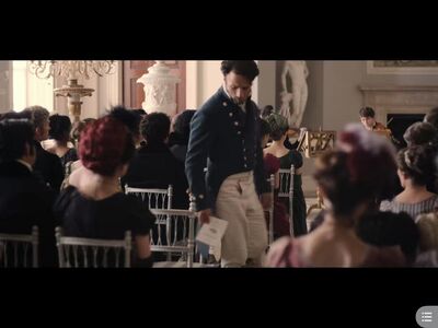 Elliot们去攀Lady Dalrymple的亲戚时有两处十分明显的错误,纵然全片中其他见面时行礼、chaperone这些礼节能勉强算是因为“modern”而抛掉过去的繁文缛节而不谈,这两处却不能不提出来说明。其一是会面明显是白天,Lady Dalrymple却戴上了晚上已婚女性才会戴的tiara,其二是Mr. Elliot在Elizabeth在场时称Anne为“Miss Elliot”。为示区分,一定是身为长女的Elizabeth被称作“Miss Elliot”,而Anne被称作“Miss Anne”。