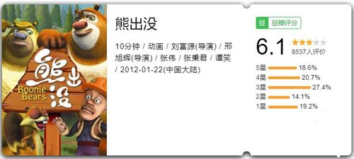 虽然《熊出没》有名,但动画剧集在豆瓣刚过及格线。