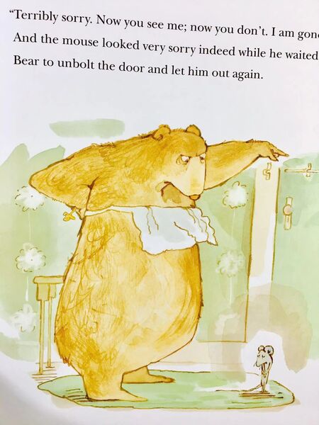 玛丽索出现后,让我想起一本儿童绘本,国内翻译叫《大熊和小老鼠》,我手里的是英文版,我随便拍几张,大家凑合看吧。