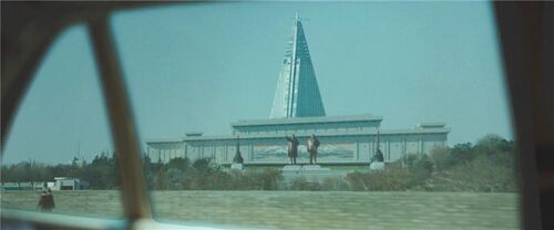 故事进入重头戏,跟着主角视角看到一个充满年代感和禁忌威仪的北朝鲜,活久见的神秘平壤。网上考据,剧组实地拍摄的可能性很小,多推测是CG合成。