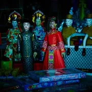 这部电影的氛围营造得也很不错。影片的配乐和音效很有温仔的风格,低沉、拉扯。当然也有自己的特色,就是民乐的运用,更加突出“冥婚”这个传统习俗这个主题,也很好挖掘了民乐的诡异气质。另外,女鬼那套中式婚礼礼服设计也加分不少,尤其是满头的铃铛,女鬼一动,就听到隐隐约约、细碎的叮当声,影片的恐怖氛围立增。虽然节奏真心慢,但是以上诸多还是让这部电影显得比较出色,有氛围,有悬疑,有故事,有情感,相对这几年看的恐怖片,算是很不错的一部。这几年恐怖片走下坡路很明显。好看的,让人眼前一亮的恐怖屈指可数。希望这部能够是个新起点,继续用心做恐怖电影。