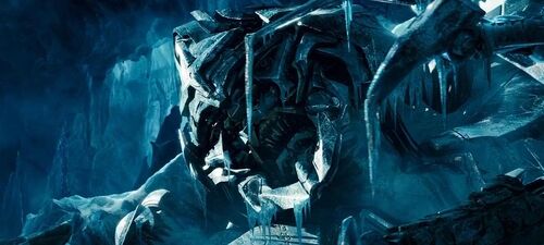 而威震天也跟着追过去,坠落在地球,于是有了变1被冰冻的剧情。
