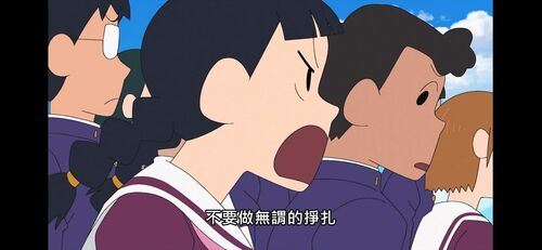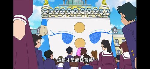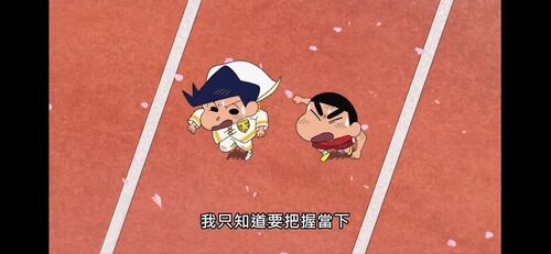 同样是奔跑,二十年前是野原一家带着所有人的信心奔赴未来 ,二十年后是春我部防卫队带着信念冲向属于自己的“现在”。同样是“奔跑”,二十年前的新酱在阶梯上一次一次的摔倒、站起…,二十年后的新酱和小伙伴们在重重阻挠下,又是摔倒再站起,带着希望与嘱托奔赴终点;二十年前,在与“昭和复古集团”的交手中,新酱说出了自己想要的未来,二十年后,在迫近终点之时,机器人“迷茫”般的提问下,众人回答了“什么是青春”;二十年前,新之助在我们身边,激励着彼时正处于经济下滑时期的日本人民和彼时彼刻同样为“崭新的二十一世纪”迷茫的人们,二十年后,他依然在我们身边,提醒我们珍惜现在,与其内卷成为“超级精英”,不如在人生奔跑的旅途中享受当下,找到真实的自己;在这二十年前,在那二十年后,他一直都在我们身边……