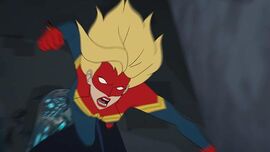 其实从本片的整体表现来看,《漫威崛起:秘密勇士》大部分时间是在为即将上映的《惊奇队长》热身。顶着漫威名号的漫威队长/惊奇队长,承载着漫威公司的殷切期望,肩负承上启下的重任,要实现漫威电影宇宙第二阶段的开门红。前段时间选角风波,观众们对这个完全不符合漫画中形象的主角布丽·拉尔森基本都持否定和悲观态度,漫威亟需推出一些铺垫作品,为19年3月就要上映的《惊奇队长》造势。不过在本片中,惊奇队长依旧是金发瓜子脸,和宽下巴的布丽·拉尔森完全不像嘛。