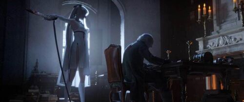 很难想象两个较为相反词语能同时出现在一个女生的身上,让我回忆起无名出场还有斩杀卡巴内的那两幕场景。出场时和服木屐的装扮是那么的柔弱,柔软的身姿在地上轻盈的踏过。那是纯白的魅力,那是简单而直接的美,这种美丽是直接投入我们眼神和内心的。但是,反差的出现也就在那么一瞬间,在她孤身一人面临卡巴内时,她并不像柔弱女子一般发抖,而是冷冷的注视着卡巴内的逼近,潇洒地把脖子上的系带解开,随着回首的飞踢还有木屐上短刃的白光一闪,卡巴内顿时倒下。冷冽的眼神出现在了女孩身上,那是不畏惧或者说见证过死亡以后的漠视,这是更像是身经百战的战士身上该出现的表情,可是当这表情浮现在女孩脸上时,这种美丽,也成为了一种震撼。