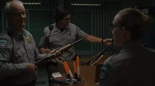 丧尸第一次侵害人类,第一幕中出现的餐厅营业员纷纷遭遇不测。她们的尸体无力且扭曲的躺在地上,三位小镇警察先后进入餐厅一探究竟。在这一幕中,出现了台词的反复,镜头的反复,还有人物行为的反复,这些刻意的反复是影片类型特征的最好体现。贾木许所塑造的标志性风格,一种自我反思式的疏离美学就暗藏其中。