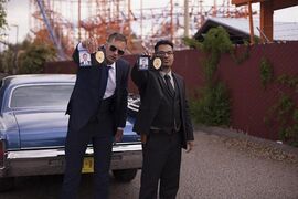 泰瑞和鲍勃是新墨西哥两名无赖、腐败警察,靠勒索犯罪份子牟利。一次,欲通过雷吉谋取100万,不料黑道老大摩根黑吃黑卷走80万。泰瑞和鲍勃向摩根恐吓索求80万,又不料被摩根动用关系将二人踢出警局。接着,泰瑞、鲍勃杀向摩根老巢,一场西部牛仔式的枪战上演……