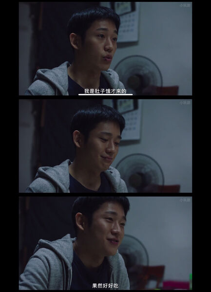 27. 贤宇打完架去恩子姐姐那里讨了碗面片汤吃,他红着眼眶说真好吃。这场戏拍完,丁海寅在回家的路上哭了一路,无法走出那个情绪。