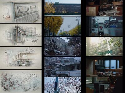 20. 有记者问电影画面看起来很有蜡笔画的感觉,导演说第一是因为丁海寅和金高银好看,所以看起来画面很美。第二是跟摄影导演商量后,用35毫米和40毫米镜头拍摄,一般标准是50毫米。2005年以后颜色会变得更现代一点,本来想把每个时期的颜色分块呈现,但在后期还是决定颜色做的更厚重更模糊。