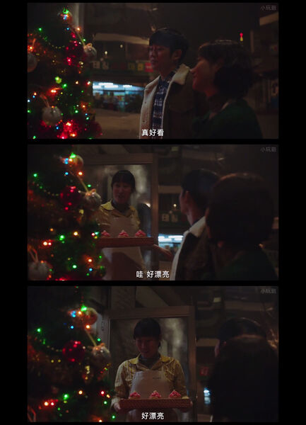 6. 准备圣诞节的时候三个人的“好漂亮”(예쁘다)各有所指。贤宇说的是美秀,恩子说的是圣诞树,美秀说的是小蛋糕。
