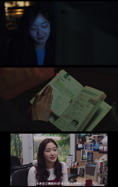 11. 关于第二次偶遇。2005年韩国大学生创业潮,贤宇为了记录自己珍视的瞬间喜欢上拍照,大学学的是摄影,他跟自己的几个前辈一起出来创业,前辈的前辈钟宇是做出版社的富二代(这个设定是根据钟宇跟美秀对话中提及自己妈妈那一段),办公室二层空着就支援给他们创业了。而美秀这个时期已经走出印刷厂,开始追求自己的梦想,终于做了与文字创作相关的工作。她参与出版的图书登上热销榜第6,对她而言是‘发生了好事’,自尊感得到提升,是可以接受贤宇的好时机了。