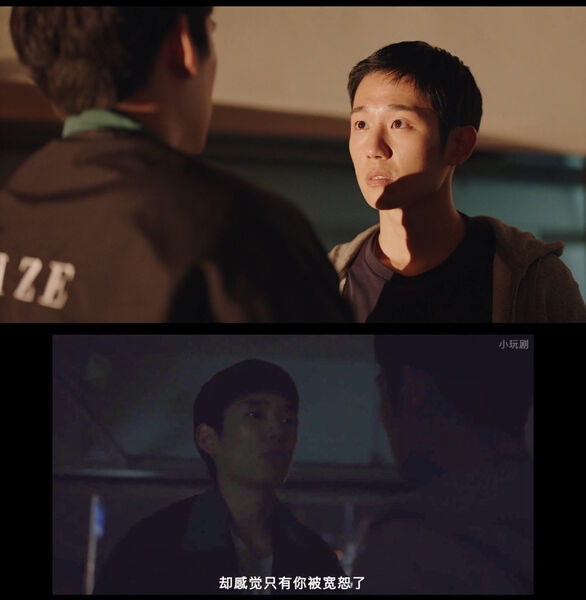 24.对于事故发生没有具体描绘情节,导演说不想让暴力画面赤裸裸呈现出来,留白可以让观众有自己的思考,同时让这件事的矛盾不那么有针对性。从作品整体来看,如果对这个事件做具体描述,就会显得电影太执着于叙述过去,也会弱化恩子的台词“(贤宇)说因为相信他,所以很感激“带来的共鸣。贤宇因为别人误会而承受的痛苦也会少那么一些想象的空间。