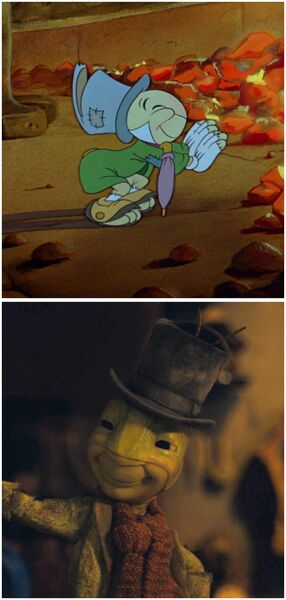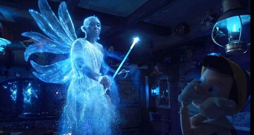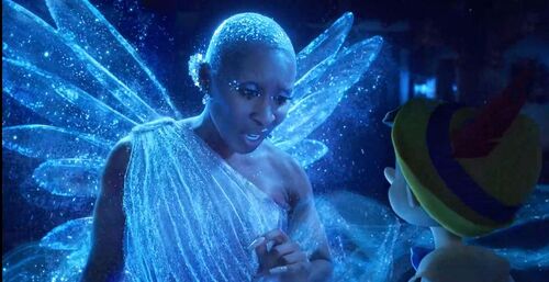 片中从角色到剧情,都像是1940年动画的牵线木偶,影片一方面想着还原,一方面又想着做出突破,可惜这番努力注定是徒劳的,让我们看看本片相比于1940年动画差别最大的是什么:是更少的歌曲,一个咖色残疾独立女性木偶师的故事线,还有黑人化的蓝仙女...