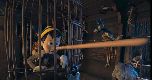前面不是说到本片加了一位残疾女木偶师的戏份嘛,这似乎是影片想要释放出的一个讯息,脱离桎梏,追求自己喜欢的事业。但这个女孩对于匹诺曹的冒险几乎没有任何推进,未能帮他拿到钥匙打开笼子(最后还是鼻子 小蟋蟀),后面更是在匹诺曹找爸爸前突然出现,像是一个横插的副本。