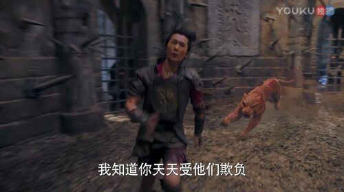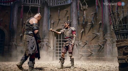 此时一段莫名其妙的配乐再次出现,抒情的音乐与演员奇特的演技形成了强烈的对比,令人感到恶心不已。为了快速引出主要人物,导演又给这个在原著中未曾存在的武斗场加了戏份,安排林动与一只火蟒虎对战(没错,就是林动的好兄弟小虎)。
