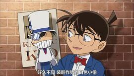白色斗篷、高礼帽,单片夹鼻眼镜。出现在午夜的高楼,留下拿走宝石的通知函。这是我们熟知的怪盗基德。在《名侦探柯南》里,他是不亚于工藤新一和江户川柯南的明星人物。而他的真实身份则是高中生黑羽快斗(山口胜平配音),为了调查父亲的失踪事件,扮起了父亲之前扮演的角色——怪盗基德,希望引出神秘组织的出现,进而调查出事情的真相。 《魔术快斗》首次连载在《少年SUNDAY》上是1987年,中途停载了数次,至今仍未完结。号称杂志上连载时间最长的漫画。由于怪盗基德经常性在柯南里客串,以至于很多人都误认为这是柯南的原创人物,其实基德有其正篇漫画,从其诞生时间来看,他比柯南更早出现,漫画里则有很多奇幻因素,而基德的性格也有所不同。