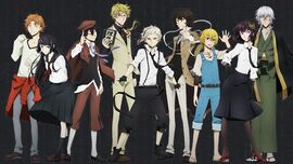 比如少年是写过《耽美派研究》的中岛敦,美青年是国内亦人气很高的《人间失格》的作者太宰治,他的搭档是日本文学自然主义先驱的国木田独步,而侦探社的人还有宫泽贤治(《银河铁道之夜》作者)、江户川乱步(日本推理小说之父)等文豪;侦探社创立人是夏目漱石(日本国民级作家),与侦探社对抗的港口黑手党有芥川龙之介(《罗生门》作者)、樋口一叶(头像见日本面额5000的纸币)等文豪;之后对抗的三大巨头与其中的一支“组合”更是囊括侦探小说家阿加莎·克里斯蒂,《罪与罚》作者陀思妥耶夫斯基,《了不起的盖茨比》作者菲茨杰拉德等西方小说家。而且,所有文豪的异能都与他们的作品有关,比如太宰治“人间失格”是使异能无效化,与谢野晶子“君死勿给”(诗作“君死にたまふこと勿给れ”缩写,即“你不要死”)是治愈能力,芥川龙之介“罗生门”是将外套化为能切开一切的黑兽等。