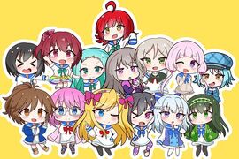 故事介绍 舞原音乐大学附属舞原高中,通称“舞舞”。这是个聚集全国音乐家种子的地方。其中有一个谜之传闻:“在学园祭上展示自己的才华的话,好像会得到神秘的学分”。这样的传闻便造就了这样的乐队! 明坂芹菜:新田惠海 御形爱丽丝安娜:福原绫香 天王洲荠:山本彩乃 小佛凪:佐仓薰 箱部鸣:M·A·O 月铃白奈:高野麻里佳 月铃那知:今村彩夏