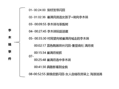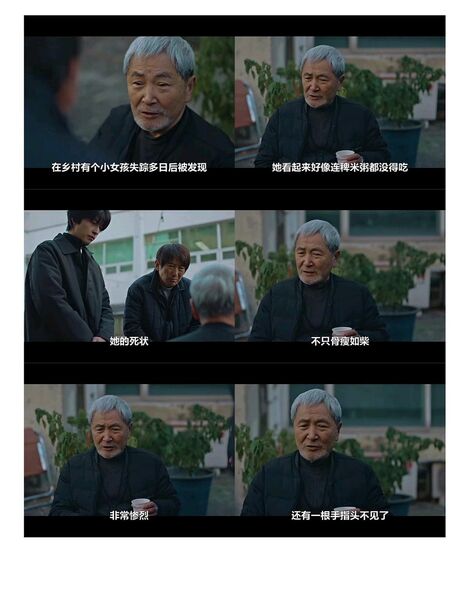 6.24两个警察和镇长在村口林里发现了6.7失踪的李木端的尸体,7.2在警察局里审问女童失踪案的嫌疑人崔满月
