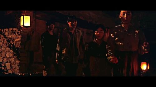 这个场景最重要的是家庭信息:男人应该是木端爸爸,垂髫树有出现;挽着木端手的应该是妈妈;后面男孩样子比木端要大,应该是哥哥。