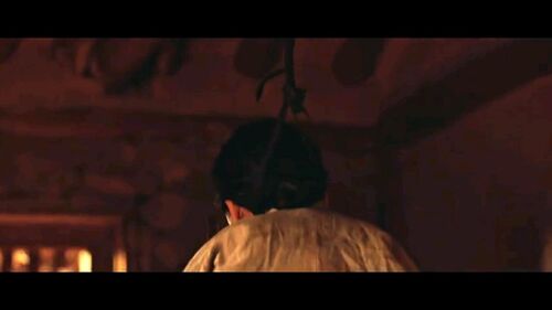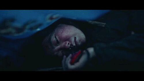 自杀鬼和垂髫树那集,画面闪回-木端被裹进白色被单中(衣物完整)