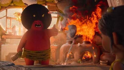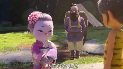 老爹和女儿奥纳丽虽然形象大异,但头上都长着犄角,还不能准确判断是何种生物。