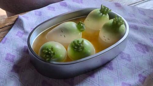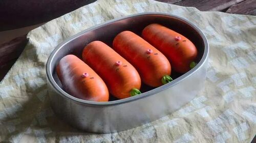 有趣的是,白萝卜的午餐是小红萝卜,红萝卜的午餐是小白萝卜,两只萝卜动筷之前还互相看了对方一眼,不知是仇敌还是挚友。