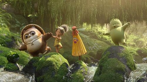 河童是奥纳丽最好的朋友,它背着龟壳,头顶盘子,盘子里有一汪水,如果水没了,它也会跟着一起倒。河童平日里胆子小,和奥纳丽形成鲜明对比。