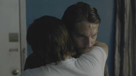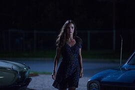 乔迪·巴尔弗饰演的妻子,面无表情地与泳池中的丈夫对视,身体微微地战栗,想打个招呼却只是动了动手指,人物六神无主和内心的恐惧一泄无遗: