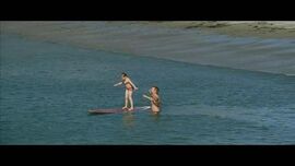斯丹和卡门在麦田的赤裸相见是本片最美的镜头之一。金色的阳光洒下来,我们只看到两个肆无忌惮的青年毫无防备的在一起,享受着无羁和狂野。斯丹和萝丝在巨幕画板对望着嬉戏是片中另一个美丽的镜头。同样光影之下同样的无忧无虑,笑的旁若无人。
