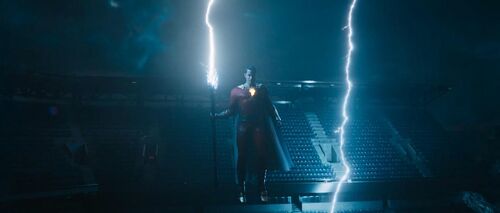 [沙赞]由[扎克瑞·莱维]饰演,作为具有六大力量的半神,他能够使用超自然的力量来对抗反派角色黑亚当。