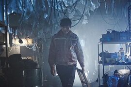 从结尾那张全家福中推测,里面是一对夫妇养育了3个孩子,其中2个儿子1个女儿,而中间一段极短的画面应该表述的是父亲不知道发了什么疯,把门反锁后,一把火烧掉了全家,仅剩其中一个儿子。于是乎,儿子在内心深处极度怨恨父亲,也不知道从哪里学会了一些科学知识并弄来了一些设备,以家里为基点,全面开发了整个下水道系统,组装电线,安装了闭路电视,对新设洞区域及下水道进行了全面监控,一旦发现了落单的少年、少女、少妇马上操控路灯系统,再夜袭击晕后带回下水道,争取模拟组装出一幕家庭聚餐场景。