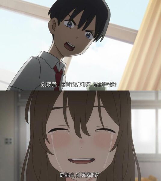 以《想哭的我戴上了猫的面具》为例,可能因为剧情上涉及到未成年早恋问题,因此台词遭到了大量和谐,例如"我爱你"变成了"我喜欢你","示爱"变成了"示好",最严重的是把"喜欢你"翻译成了"谢谢你",导致意思已经完全变了。