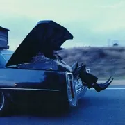 第一个,是乐手们坐在户外围栏里围着桌子喝啤酒发呆时,看见几个人拉着一台汽车发动机从面前走过,小胡子经纪人开了句玩笑“是从哪个傻瓜那里偷来的”,然后乐手们开始笑,笑了半天,一直到回到车上准备开车走的时候还没有停。这时候发现汽车启动不了,打开车盖,发动机没有了,他们才停下笑。