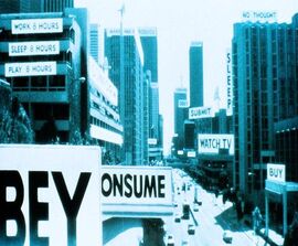 约翰•纳达是个流浪汉,他半天在洛杉矶的工地上干活,晚上与一群无家可归的家伙谁在一起。在这里,他发现了一个秘密的革命组织,他们确信外星人已经控制了人类、我们的社会岌岌可危。就像尼奥选择了那枚红色的药丸,纳达戴上他们研制的眼镜,看到了令人震惊的真相——相貌恶心的外星人混杂在我们中间,电视、广告招牌、杂志全是外星人对我们进行“潜意识的催眠”的工具:顺从、结婚&生育、不要独立思想、看电视、购买、消费、不要质疑专家,而美元上的写的则是“这就是你的上帝”。