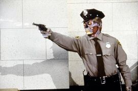 最有趣的是影片结尾,纳达捣毁了外星人的收发设施,他们纷纷现了原形,包括电视上正在呵斥“罗梅罗与卡朋特走得太远”了的著名影评人Gene Siskel与罗杰•艾伯特。 这篇影评有剧透