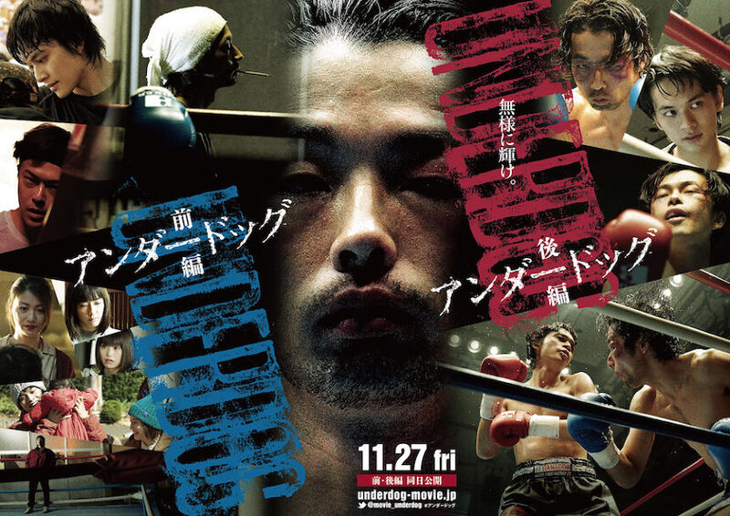 几年过去,我也没去学拳击。当年的年轻人逐渐变成中年人。武正晴监督在拳击上还有话要说,于是有了这部《败犬》(《アンダードッグ》)。海报上的森山老师被揍成青红,而斜着印刷的“underdog”字体也像是轮胎印一样野蛮地辗过森山的脸。武正晴 足立绅 森山未来这个组合起码会是爽的。《败犬》作为东京国际电影节的开幕影片,并且获得日本旬报佳片第四名以及日本映画优秀赏,森山未来凭此片获得男优主演赏。在此之上,此片还有不得不看的理由,那必然就是森山未来了,这几年不断被这个身体表现的“怪物”刷新认知。多年的舞蹈功底和以日本文化部文化交流使的身份远赴以色列学习现代舞的经历,让他横跨舞台,电影,电视等表现领域。他这样的丰富性让他逐渐成长为一个日本艺能界的独特存在,总是期待他还能塑造些什么表达些什么。因为他是我心中最好的演员之一,演虫演尸体演灵魂演罪犯演猫演变装皇后演阿童木等等(插播一段当年和光妹的舞台剧片段:【音乐剧】《活了100万次的猫》森山未来X满岛光——美到流泪的对手戏cut)。上善若水,可以塑成任何形状。