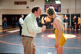 是的,这是一部快乐的电影,关于人与人之间最大的善意,也关于生活中所有甜蜜的负担。麦克监护人一事败落了,原以为会惨遭河东狮吼,没想到老婆不但收留了里奥的外孙凯尔,还气势汹汹的扬言要胖揍一顿里奥的女儿,替受家暴的凯尔报仇。高中摔跤队也因为凯尔的加入有了神奇的转机,三个中老年业务教练为了少年们的征战兴奋不已,竟然争风吃醋,笑闹成一团。虽然《双赢》依旧可以归类到温情励志片,我并不认为它的结尾就是俗套的天下太平大团圆。世上没有永动机,更何来永恒的双赢? 每个月定期把监护金寄给里奥的女儿,又要多负担一个少年的教育及日常开销,麦克的经济压力更大了,他不得不在律师和教练之外又给自己谋求了个第三职业。双赢的背面其实要开出更高的代价,我们的男主角甘之如饴,像一个平凡的微笑的英雄。