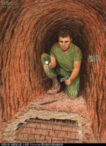 一个“坑道鼠”在下去前,再看一眼大家。谁也不知道这次下去还能不能活着上来,从军人的角度来说,他们绝对是最勇敢的士兵。有的“坑道鼠”不喜欢穿衣服,脱光上衣下地道,他可不是炫耀肌肉,而是因为衣服穿的多,容易引发地道里的铁钩、饵雷,连手枪都喜欢用最轻的,因为口径大的手枪在坑道发射会引起短暂的失明和失聪。隧道里,他会用手和膝盖一寸寸慢慢移动,手指在肮脏的泥土里能摸到竹钉坑或隐藏的诡雷。