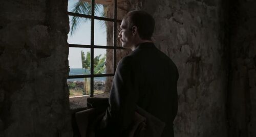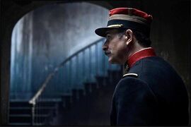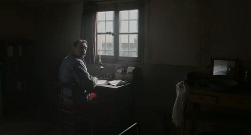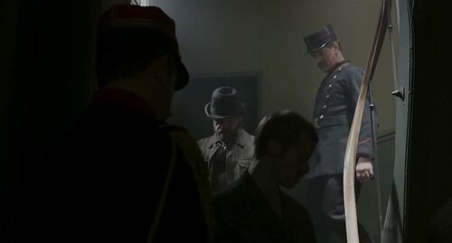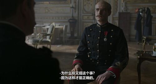 电影过去一个多小时,主角被撤职,离开了体制,画面变得明亮了一些,可体制对他的迫害远未结束。之后主角被捕,但此时视角已经放开,我们发现他的单打独斗引发燎原之火,其中就有文豪左拉。