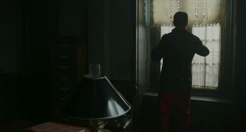 再比如,当主角发现端倪,去对比字迹的时候,其他人从上至下,步入黑暗,而后他上楼梯,从暗处去明处。