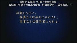 剧的后半感觉靠近了《机械战警》和《黑客帝国》,就像木村说的,这种场面更像是在拍电影。打斗的场景、后期特效、各种SF的neta暂且略过不谈(因为光是SF neta的考证除了字幕组注释出来的之外还有不计其数的分量ORZ),总之是消灭了第一台“要你命”的机体,而且这机体还自称是警察,并且透露这个时代还有其他10台相似的而且都比LLOYD高端的警察机体。于是从数量上来看基本上之后每一集消灭一个机体妥妥的了。拉普拉斯还说,歪曲历史的是沫嶋黎士,于是触及根本的问题再次以清楚的逻辑顺序被抛给观众。为什么黎士要去歪曲历史?→为了救麻阳→为什么麻阳需要被救(即要被杀)?相信最后的这个疑问也会是本剧最核心的疑问之一,不到最后一集应该不会被解开。