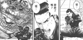 被矮星人追杀,明明怕得要死,还是跑回教室救走小岛,然后又不顾小岛安危,利用她做诱饵击杀矮星人。