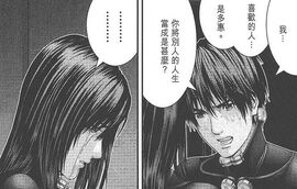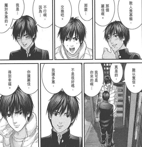 在不断的杀戮中,在跟小岛的交往中,玄野渐渐变得关心他人与珍惜生命。