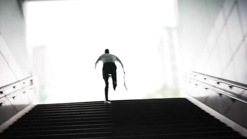 男主被困于一个地铁站的地下道里,头顶的标识牌写着前方是8号出口。