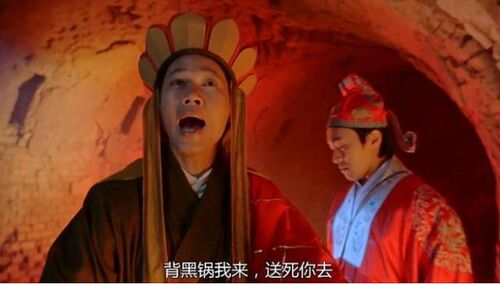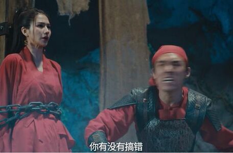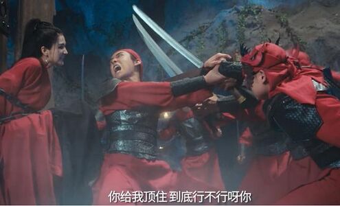 电影开场,明心被火莲教抓住当成了祭品,结果她跟话痨式的开口说“我上有九十岁老人,下有九十天的婴儿要照顾”,向对方讨饶。